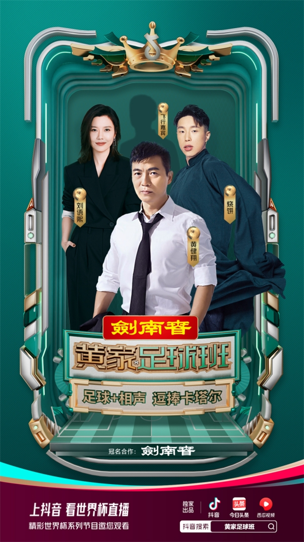 评球大咖黄健翔联手德云社,带来《黄家足球班》,用足球相声打开世界杯。