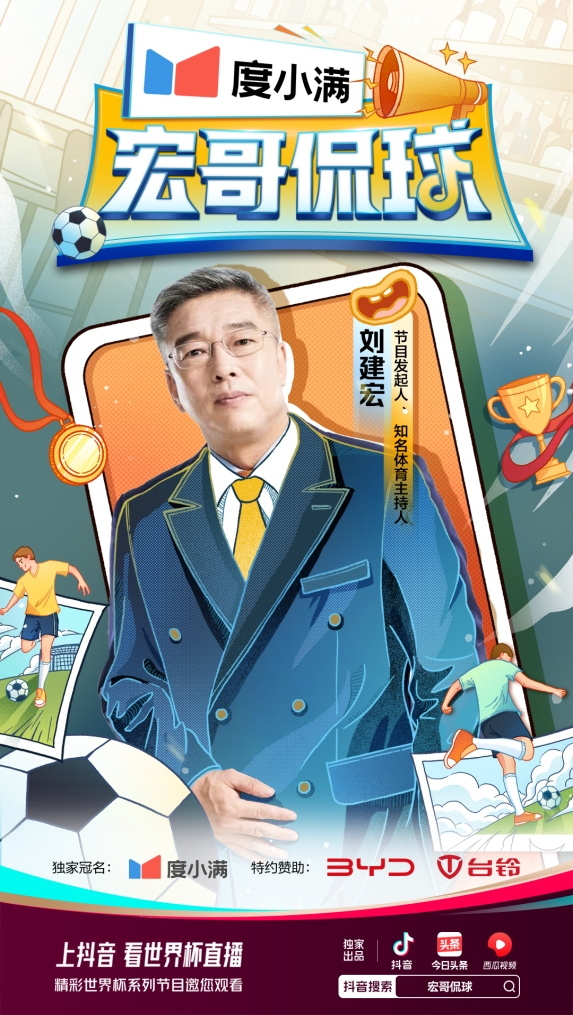 由抖音独家联合刘建宏出品的《宏哥侃球》将带来12期精彩直播节目,再现四年一度经典场面,分享世界杯赛场内外趣事,解读重点场次赛况,还有趣味脱口秀带你“趣看”世界杯。