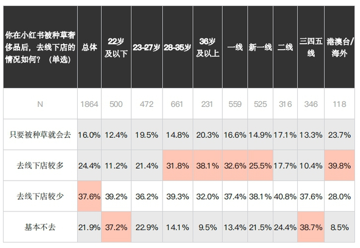 40.4%的受访者,种草后会前往线下门店购买,形成“小红书上观看—种草—搜索—线下体验—购买—小红书分享”的良性循环。