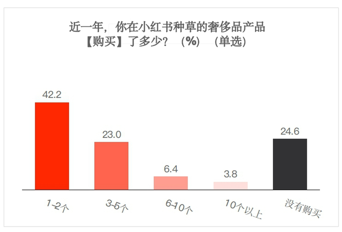 “近一年在小红书有过种草体验的奢侈品用户中,75.4%的用户买了至少1 件奢侈品”