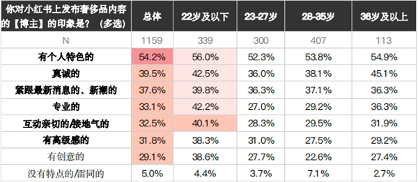 - 博主: 真实性、新潮感和创意感是小红书用户的关注重点。