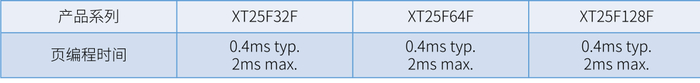 编程灵活支持单Byte写入,页编程时间典型值0.4ms,提升客户烧录效率,缩短烧录时间,可大大降低客户端生产成本。