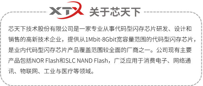 上述产品现已量产,可及时提供样品和应用手册,芯天下专业的供应体系保证客户订单准时交付。如需销售支持及咨询,请您发送邮件至:sales@xtxtech.com。