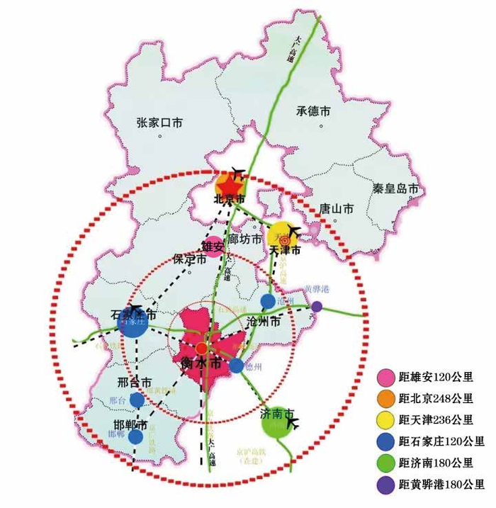 桃城高新区距衡水高铁北站不足 15 公里,即将建设的高铁南站近在咫尺,