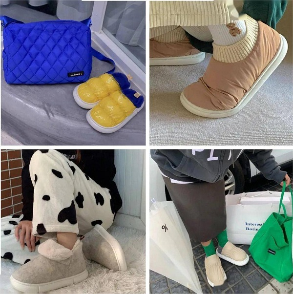 开始换上不包后跟的棉拖是进入秋冬的信号之一,一般这类棉拖造型新颖潮酷,是秋冬时尚界的新宠儿,在一定程度上既能护足保暖,也能做个精致的时髦女。甚至有些女生愿意在寒风刺骨的冬天脚上包着棉袜子也要穿它!