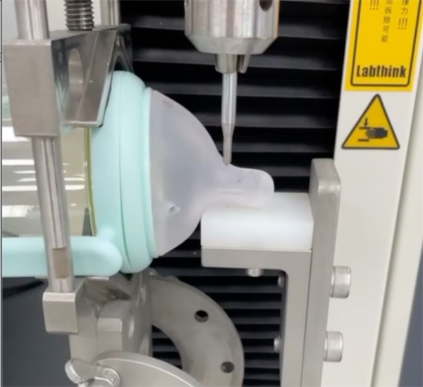 为了验证奶嘴的安全性和使用性能,“老爸抽检”对奶嘴做了柔性测试、可迁移双酚A、亚硝胺释放量、挥发性物质、总迁移量等项目的检测。同时还就奶嘴做了针刺性能、抗拉扯性能、安全保持力等性能做了测试。实验结果均符合要求。