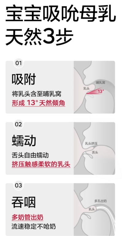 13°歪头倾角设计,深度还原母乳喂养123步骤