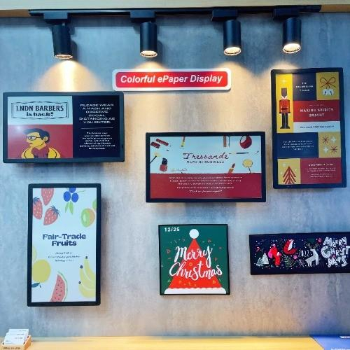 本次展会,DKE全彩系列电子纸产品首次亮相海外市场,展出了4.01英寸—25.3英寸的产品组合,色彩对比度显著提升,视觉更接近纸质版印刷海报,适用于数字吊牌、可移动式广告板、室内广告牌等领域。如以全彩系列电子纸显示屏呈现的广告看板、餐厅菜单,搭配无线传输技术,可实现更为多元而醒目的显示界面,更加灵活地满足多行业彩色化升级需求。