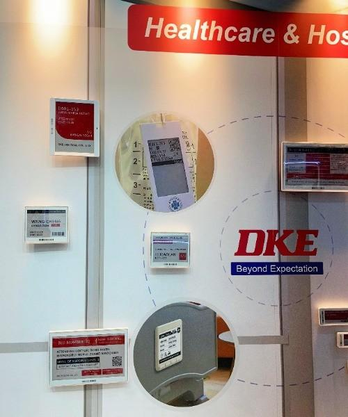 智慧医疗场景下,DKE东方科脉与合作伙伴联合展出以电子纸为显示屏幕的智能导诊屏、病房门牌、病床床头卡、药品库存管理标签等医疗场景重要终端设备,利用电子纸轻薄、类纸质感、无蓝光不伤眼等特性,完美的融入医疗病区,为患者提供舒适的体验。