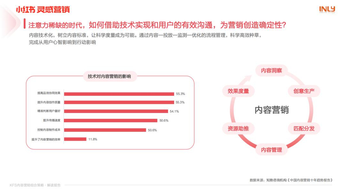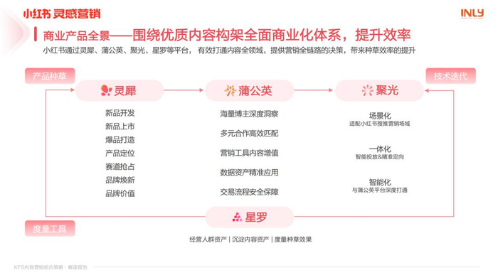 KFS内容营销组合策略融合了消费者路径与小红书灵感营销产品,形成了「内容+」的协同效应,让品牌方从用户需求出发,以资产经营为始终: