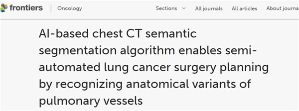 近日,推想医疗与北京大学人民医院合作产出“AI-based chest CT semantic segmentation algorithm enables semi-automated lung cancer surgery planning by recognizing anatomical variants of pulmonary vessels”,被知名期刊收录。这篇论文研究表明,基于AI的语义分割算法能够实现对段级和叶级肺血管的识别,准确度与胸外科主治医生相当。该算法基于AI-4D胸部智能可视化解决方案,进一步提高了其性能和实用性,大大提高了识别效率,帮助实现准确的术前规划。