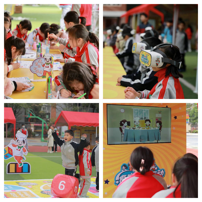 比如在线下举办食安科普展览活动,设置健康知识区、美味畅想体验区、VR体验区、缤纷互动体验区等,将食安知识融入有趣的游戏、科技感十足的VR视频、互动问答等多种形式。以学生喜欢的内容和方式达成重点知识的输出,用多种参与模式重复强调,形成强化记忆点。