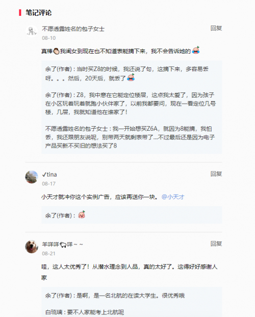 有趣的是,在这个视频发出后,网友也留言说,小天才应该冲着这个实例广告,再送她一块手表。从这也看出了电话手表的品质确实得到很多用户的认可,也确实免费给小天才打了一波广告。