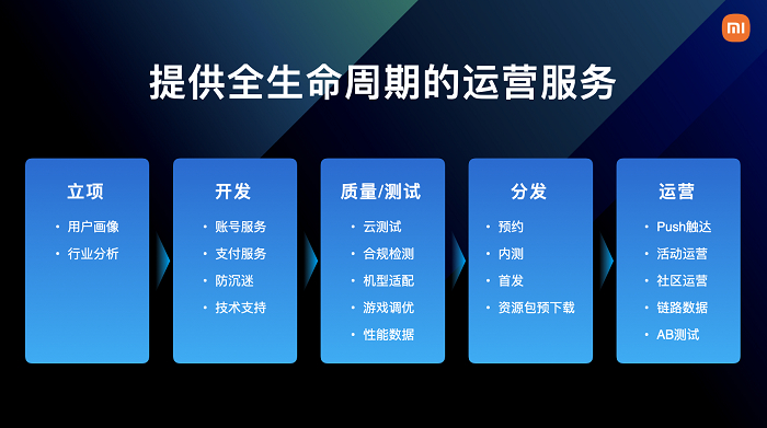 据悉,小米游戏通过前置预约、首发打爆、后续智能平台运营以及活动促进用户回流,帮助游戏厂商提升玩家的LTV(客户生命周期价值)。小米游戏中心实现了游戏全生命周期的运营服务,涵盖立项-开发-测试-分发-运营全链路。同时提供⾃动化测试、隐私检测、防沉迷SDK等,降低开发者管理成本,保障游戏合规且快速上架。通过建站平台帮助开发者建⽴分发活动,将资源包提前⽆感知下发,提升下载激活、登录成功和回流各项效率,力求在降低成本与提升效果和效率之间找到最合适的方式方法,帮助开发者降本增效。
