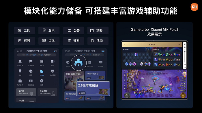 其中一个新的技术融合亮点是小米为用户提供了“系统级游戏助手Gameturbo”,⽤户可以在这⾥查找攻略、消费内容,同时不干扰游戏操作。这种沉浸式的体验大大减少了用户在游戏过程中跳出的频率,提升了游戏体验的连贯性,一经上线就收获了大量游戏玩家的好评。对于游戏开发者来说,Gameturbo的高频使用进一步降低了⽤户流失的可能,有效提升了玩家的游戏内时长。