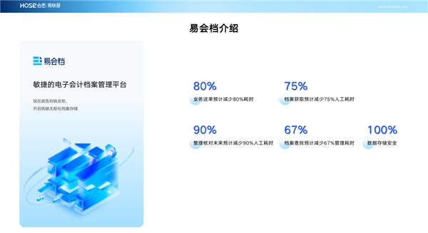 全链路打通后,合思·易会档可实现财务档案全量数字化,数据流转更完善、智能采集更精准、档案调取/利用更丝滑、数据更完整透明,通过自动获取原文件、拉取元数据,智能组装,减少了财务在档案采、制、存、用全场景工作的复杂工序,也规避了档案管理风险,达成企业财务档案管理工作中“降本增效”的目标,实现真正的“无需归档”。