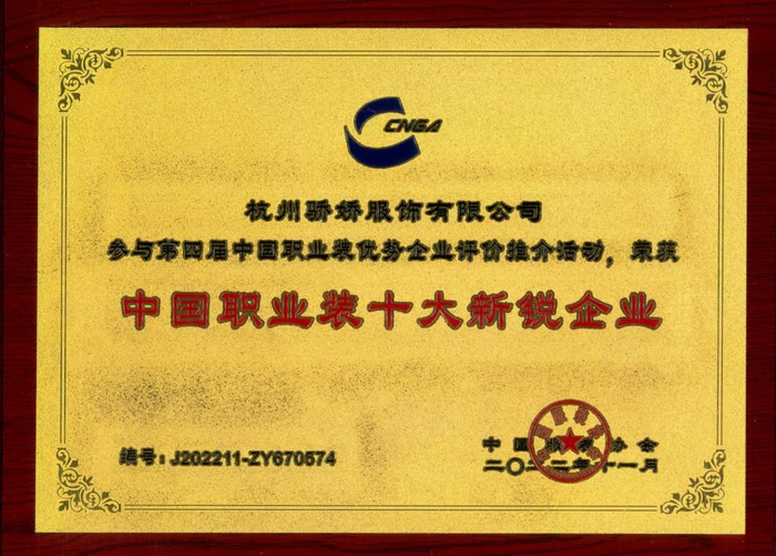 为了对职业装企业的客观评价,充分肯定企业在年度内所取得的成绩。通过对优势职业装企业为对象的奖励表彰和各种形式的推介活动,展示榜样企业,进一步扩大优势企业(品牌)的知名度和影响力,发挥优势企业的示范引领作用,进而推动职业装市场的规范化运行,进而推动职业装产业的高质量发展。中国服装协会组织开展“中国职业装优势企业评价推介活动”。经过层层审核筛选,评选出了“中国职业装十大领军企业”、“中国职业装50强企业”、“中国职业装十大新锐企业”、“中国校服优势企业”、“中国职业装(防护服)优势企业、入围企业”。国内领先服装定制平台“衣邦人”旗下的杭州骄娇服饰有限公司脱颖而出,蝉联“中国职业装50强企业”、同时喜获“中国职业装十大新锐企业”。