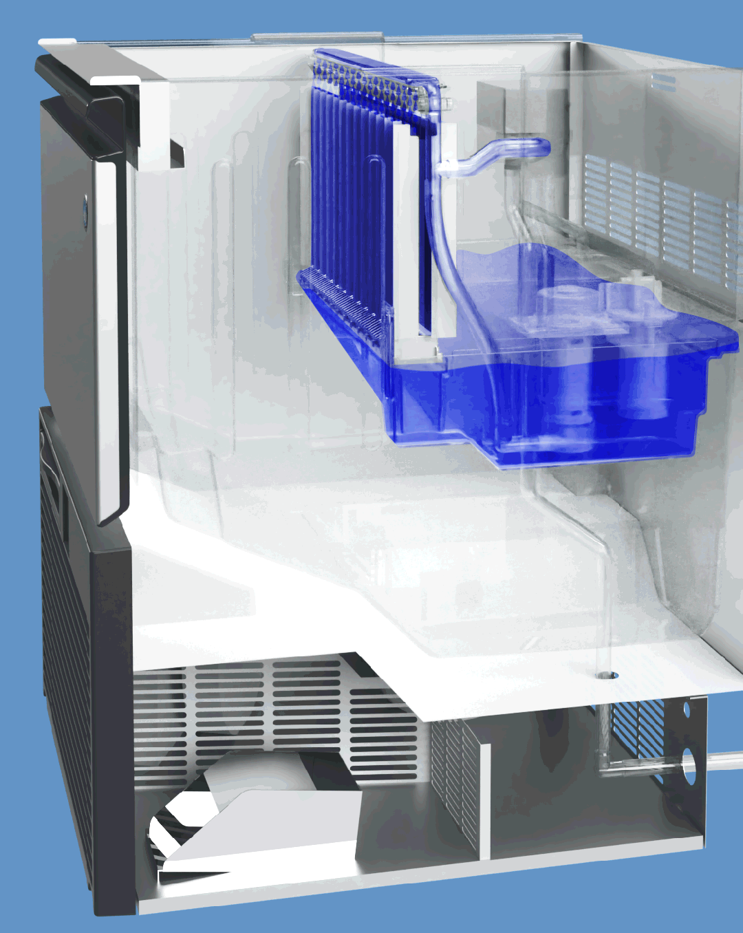 此外,KM系列以往产品的优势亦被完整保留,垂直双面流水式制冰形成的冰块外形犹如一弯新月,颇具时尚与美感。而冰块晶莹剔透的外表下则是其强悍的产品性能,KM系列制冰机在制冰过程中增加了制冰板与制冷管接触面积,提高了热交换效率,增加了单位之间内的产冰量。