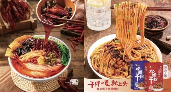 在传承经典之外,迎合Z世代人群更多偏好和口味需求,好欢螺也在不断探索螺蛳粉在口味和吃法的无限可能。在口味上,好欢螺推出了小龙虾味螺蛳粉、加臭加辣螺蛳粉、花甲香菇螺蛳粉,今年还推出了干拌螺蛳粉和番茄牛腩螺蛳粉2款新品,让众多螺蛳粉爱好者一饱口福,尽情享受嗦粉带来的满足感。