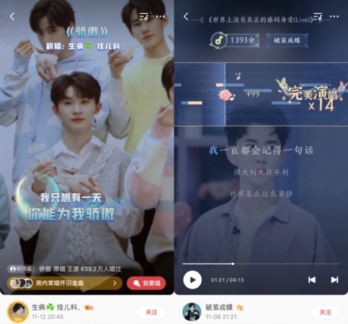 除了新专辑,王源的其他歌曲也在歌迷的演唱歌单上“榜上有名”,《骄傲》《世界上没有真正的感同身受》《十七》都在全民K歌拥有上百万的翻唱量。K歌用户“生病挂儿科”翻唱的《骄傲》,充满故事感的嗓音搭配深情的演唱,不仅唱出了对母亲的不舍,更唱出了不能陪伴在母亲身边的愧疚之情,歌声传情不外如是!K歌用户“破茧成蝶”翻唱的《世界上没有真正的感同身受》,她的嗓音温柔舒缓,在低吟浅唱中将自己的无助与孤独娓娓道来,留言区那句“初唱感慨词中人,再唱感慨词中己”更是引发了一众友友的共鸣!