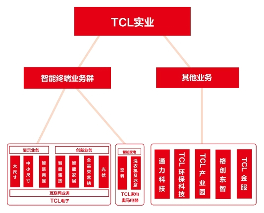 在这次转型过程中,TCL裁撤合并了100多家公司,还完成了一项金额超百亿的并购。对新能源光伏为主营业务的天津中环集团的并购,使得TCL得以进入这一新赛道。这次转型,让TCL聚焦于TCL实业和TCL科技。前者是以TCL电子为核心的智能终端产品板块,后者是半导体显示、新能源光伏板块。