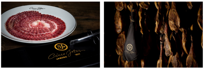 5J火腿源自1879年,是西班牙美食文化中当之无愧的瑰宝。5J火腿是来自哈布果(Jabugo)的传奇,遵循比西班牙国家分级中的黑标火腿更为严苛的标准。美味是时光带来的艺术,5J火腿使用世代相传的传统工艺,在百年火腿窖中匠心打造,每一条5J火腿至少经历5年以上的自然过程,以呈现出浓郁坚果香气及丰富味觉层次。5J火腿畅销至全球50多个国家及地区,为世界美食爱好者们带来令人难忘的奢华体验,在众多米其林主厨与资深美食家心中有着无可比拟的地位,深受时尚、文化、艺术等领域大师们的珍爱。
