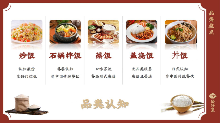 米饭的细分赛道里,有炒饭、石锅拌饭、蒸饭、丼饭、盖浇饭、煲仔饭几大类,每个品类都有各自的特点,而我选择品类有两个标准:1、做中国特色餐饮,符合中式的元素2、品类有广泛的认知基础。 所以我锁定了煲仔饭这个品类。煲仔饭品类有几个优势,第一、传统中国千年品类,大家都有认知;第二、有品类无品牌,赛道机会空间很大;第三、煲仔饭天然有价格上的心智优势,煲仔饭出生在粤菜系里,又都出现在高档的餐厅里,卖贵一点大家心里也能接受,容易做出利润。