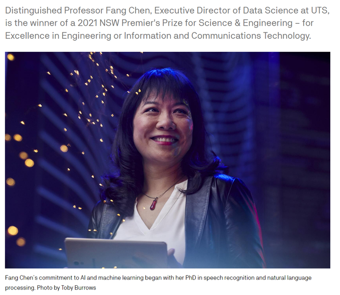 悉尼科技大学UTS人工智能研究所的AI研究致力于解决现实世界中的问题,旨在改变商业、政府和工作的未来,并将AI技术应用于UTS的各个学科领域。学术与行业深度结合为学生提供自由前沿氛围的同时,还吸引了更多学术前沿领袖的加入——UTS杰出教授Fang Chen正是人工智能与信息技术领域的领军人物之一。