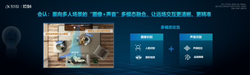 其二,面向多人场景的“图像+声音”多模态融合,让远场交互更精准。现在很多电视、音箱的远场交互都是依赖“单语音+唤醒词”的方式进行,一来这种方式需要用户频繁进行唤醒词唤醒,每说一句话都要喊一次,非常繁杂;二来客厅环境经常有各种人声、电视背景音、甚至窗外的杂音等,会影响远场语音的识别效果。