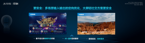 其三,多场景输入输出的定向优化,大屏轻社交方案更安全。iFLYHOME OS 2.0上线大屏轻交互解决方案,可实现大屏弹幕和大屏字幕翻译功能。针对大屏弹幕功能,上线组合敏感词识别、基于语义的敏感内容识别,敏感词过滤保障大屏内容安全。另外,字幕在线翻译支持中文和英语等四十多个语种的互相翻译,实施率和准确率高达99%,让大屏视频观看实时无障碍。