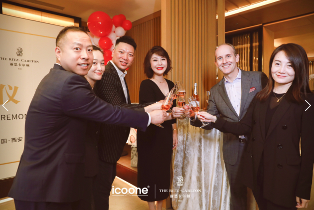 出席入驻现场相关人员代表:icoone®品牌意大利方代表Penny先生、icoone®品牌大中华区负责人Holly 杨肖丽女士、西安丽思卡尔顿酒店总经理Mr. Patrick Weder、酒店经理Mr. Francis Kuah、市场销售总监Mr. Steven Wang、水疗总监Ms. Helen Cui等。