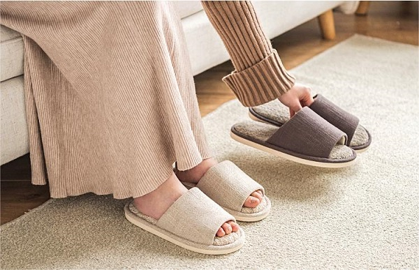 如果你喜欢简约干净的拖鞋,那你可以看看这款简约田园风造型的亚麻拖鞋。亚麻拖鞋中底采用棉麻混纺的全新材料,触感柔软亲肤踩上去不会太硬也不会过于软塌,柔软有回弹。穿上就像行走在云层一般,瞬间能缓解脚部一天的劳累。亚麻是植物的皮层纤维,它的功能近似人的皮肤,有调节温度、透气、吸湿、清爽和排湿等天然性能。夏天穿着它清爽透气不易产生异味,冬天配双袜子穿上它也能在室内起到保温蓄热的作用。