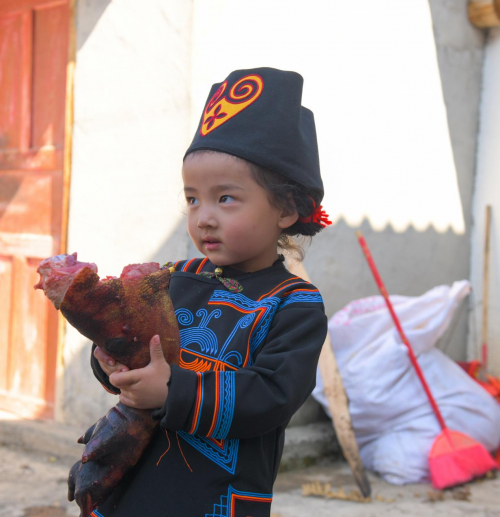 彝族过年还有一个习俗“背肉”,即送年肉孝敬长辈,这也是是彝家人的传统美德。过年后,人们穿着节日的盛装背着年肉翻山越岭,走亲访友,孝敬长辈。