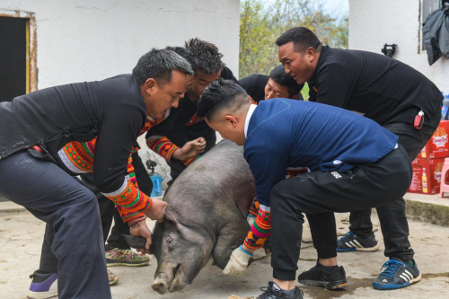 着盛装杀年猪 四川美姑群众家家欢喜过彝族年