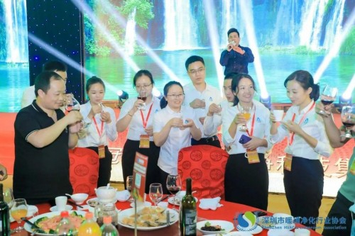 选举会议结束,欧博詹峻会长、韩彩陈明宗会长、中建南方赵汉伟执行会长、德宇峰武绍巍监事长、安兰净化何洁常务副会长、华翱夏尊华董事长 上台祝酒,以“华翱之夜”为主题的晚宴环节正式拉开序幕。