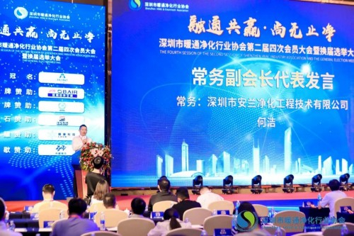 常务副会长深圳市安兰净化工程技术有限公司董事长何洁、理事中深洁净(深圳)科技有限公司董事长刘磊分别代表发言, 他们表示将一如既往,全力支持协会发展壮大,同时也希望大家持续绷紧继续努力、砥砺奋进,以更加坚定的决心、更加有力的举措,全力以赴助推暖通净化行业发展。