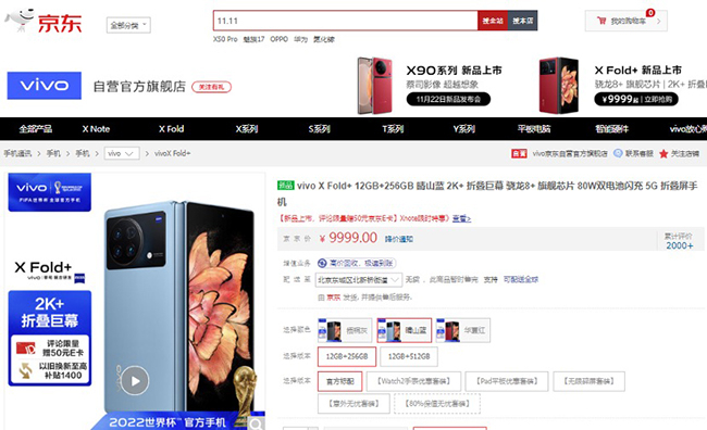 vivo X Fold+是2022FIFA卡塔尔世界杯全球官方手机,用来观赛自然不错,内外屏均使用三星AMOLED 120Hz E5超感屏,内屏为8.03英寸大屏,4:3.55黄金比例,2K+超清屏幕素质,办公、观影、观赛、电竞都能非常清晰。vivo X Fold+还带来蔡司专业影像,全焦段旗舰四摄让消费者轻松获得清晰图片,悬停解放双手,外屏预览更好用。此外,vivo X Fold+内屏还支持应用分屏、双屏双小窗等多任务处理,可以一边观赛一边和朋友讨论,位列京东新骁龙8折叠屏手机榜第六。京东下单到手价9999元起,还可享以旧换新至高补贴1400元福利。