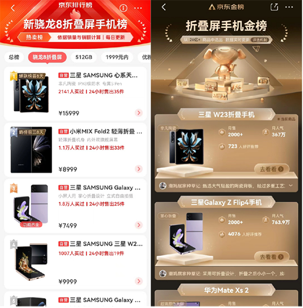 解锁观赛新体验 三星W23斩获京东新骁龙8折叠屏手机榜榜首