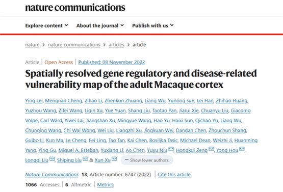 华大生命科学研究院徐讯研究员、刘石平研究员、刘龙奇研究员、侯勇研究员,昆明理工大学灵长类转化医学研究院牛昱宇教授以及美国艾伦脑科学研究中心Zeng Hongkui博士为文章的共同通讯作者。华大生命科学研究院雷莹副研究员、成梦南博士、吴亮博士、华南理工大学庄镇堃博士、中国科学院大学李子豪博士、孙雨浓博士为文章的共同第一作者。