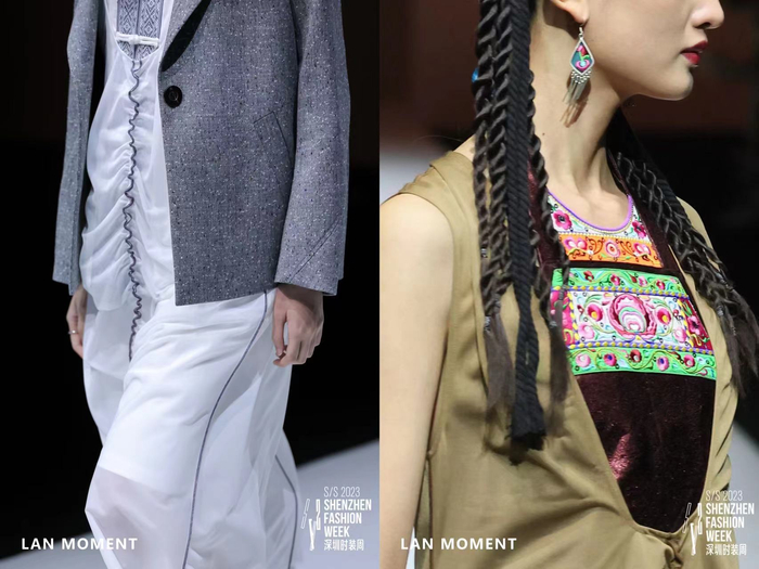 在刚落下帷幕的S/S2023深圳时装周上,由深圳兰腾国际文化发展有限公司(以下简称“兰腾文化”)旗下「跨界美学平台」LAN MOMENT所打造的「非遗未来式」大获成功,引起社会各界的热烈反响。本次主题活动由“非遗服饰T台大秀”和“非遗跨界艺术展”两大部分组成,“非遗服饰T台大秀”站在传统与时尚,民族与国际相结合的全新视角,打造时间维度上的非遗美学。“非遗跨界艺术展”则通过文化、时尚与科技跨界合作的方式,为非遗文化的传播与传承塑造更多可能性。