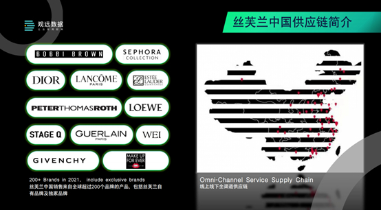 丝芙兰中国是LVMH集团下的高端美妆零售,总部在法国。在中国市场有来自全球200多个品牌,其中包含丝芙兰自有品牌。丝芙兰中国是全渠道零售,有线下300多家门店,线上丝芙兰APP、小程序和各平台上的旗舰店。所以对于丝芙兰整个供应链来说,要提供的就是线上线下全渠道的服务, 所以我们在这里谈到的货物的分配也都是线上线下全渠道的分配 。