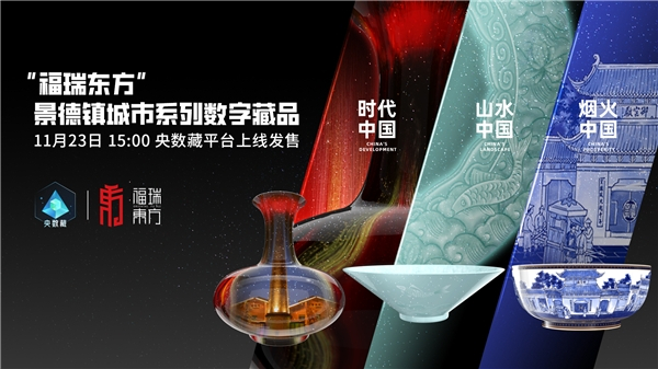 景德镇的陶瓷,是古往今来中国文化的代名词之一。为助力景德镇陶瓷文化的传承创新、扩大中国文化影响力,由央视网孵化建立的数字藏品发售平台“央数藏”将分别于11月23日、24日、25日15:00上线三款【“福瑞东方”景德镇城市系列数字藏品】,以景德镇陶瓷经典器形与工艺为传播基础,以当代中国视频影像为内容表达,以融合传承与创新的设计语言,讲述景德镇瓷器与当代中国的新时代故事。