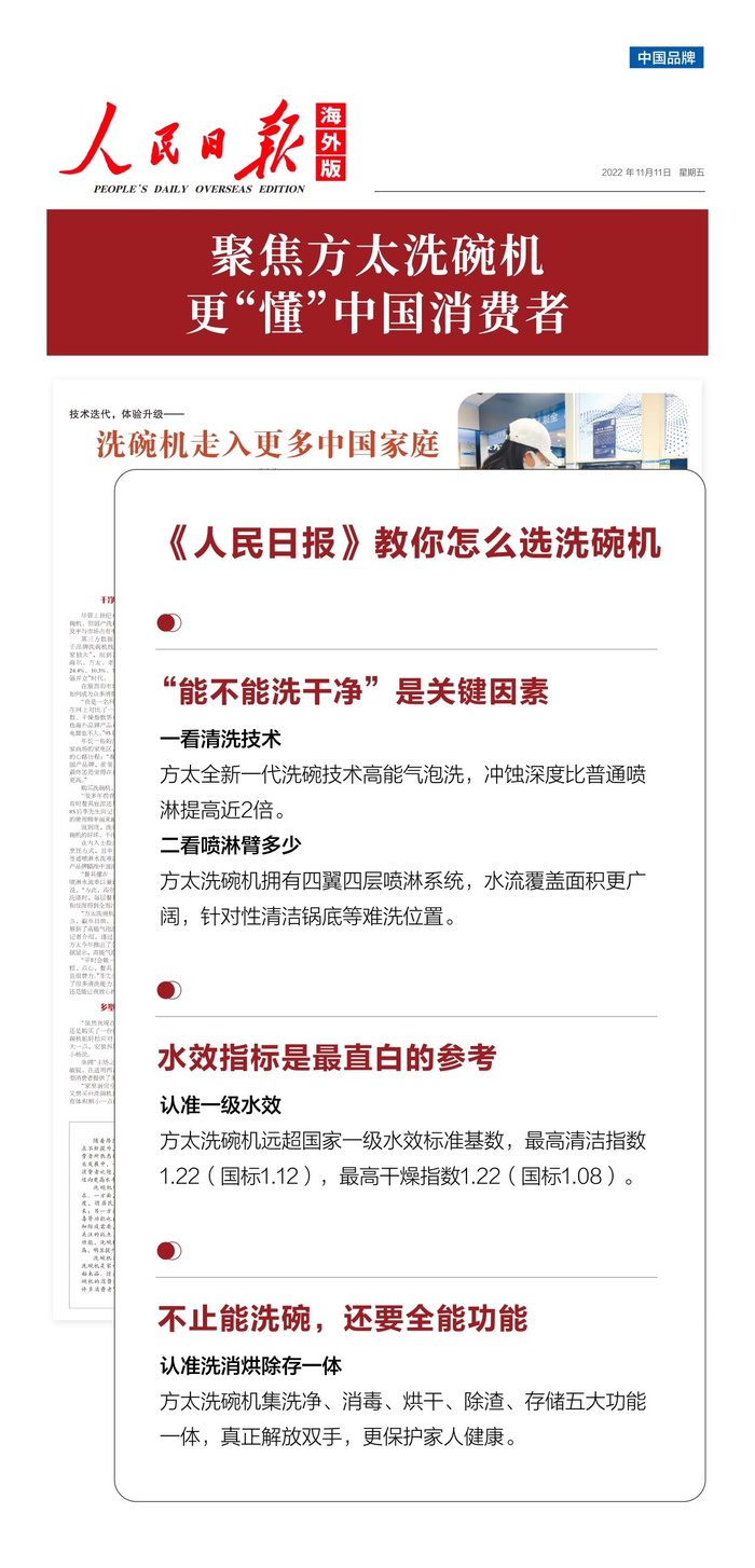人民日报点赞方太洗碗机:更“懂”中国消费者,国产品牌实力出圈