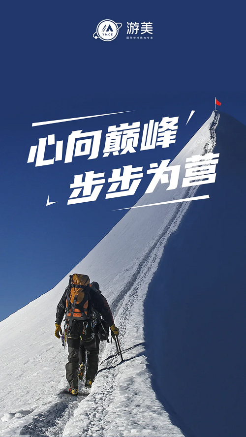 心向巅峰 ,它诠释着新时代青少年的梦想褶褶生辉,前景无比光明,内心永远向上、向未来。游美便是帮助青少年通过攀登,寻得人生理想,坚定信念,创造人生中第一个不凡,在一次次向上挑战中突破自我、强健体魄、获得坚韧力量、塑造领导力、培养全球胜任力,成为具有国际视野和竞争力的青少年。