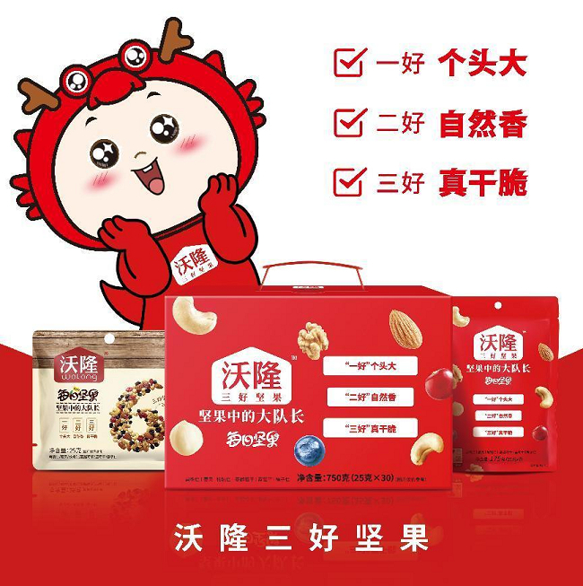 拿坚果品牌沃隆来说,很多人提到沃隆,第一反应会是“每日坚果”。其实,在持续深挖消费需求的这些年,沃隆拓展了单品坚果、坚果礼盒、含坚果烘焙食品等多个产品品类,逐步向多品类、多层次的综合型休闲食品生产商发展。其风格时尚、盒型多样的各款坚果礼盒,也在消费市场占据越来越重要的地位。