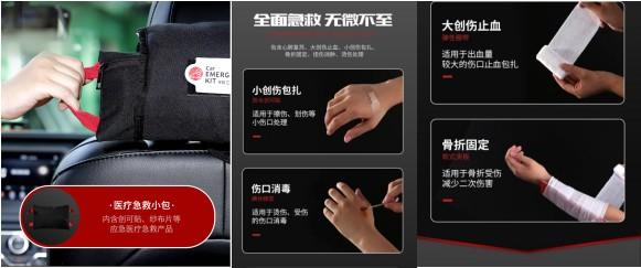 应急包,顾名思义就是在万一有人员受伤时提供帮助,所以发生车祸后我们一定要及时的检查自身和同行人的身体情况,因为大部分人群会在遭受车祸时受到惊吓,过于紧张、情绪紧绷的情况下痛感会降低,所以我们一定要记得处理完现场后及时检查人身安全,那么一旦受伤,车载应急包除了一些伤口消毒包扎方面的基础用品,应急包都会备有绷带/骨折固定板之类的用品,以保证基础的生命安全,对车载急救包的选择也是要更严格的,毕竟和人身安全挂钩,这一点我们一定要上心。