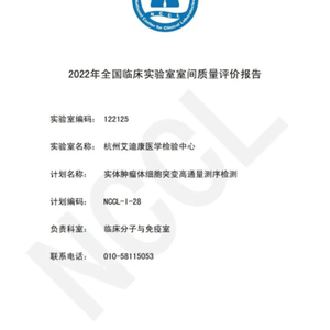 近期,国家卫生健康委临床检验中心(NCCL)公布了“2022年全国实体肿瘤相关室间质量评价”结果,艾迪康凭借专业的技术实力和严谨的实验室质量管理体系以满分成绩通过实体肿瘤相关室间质评!