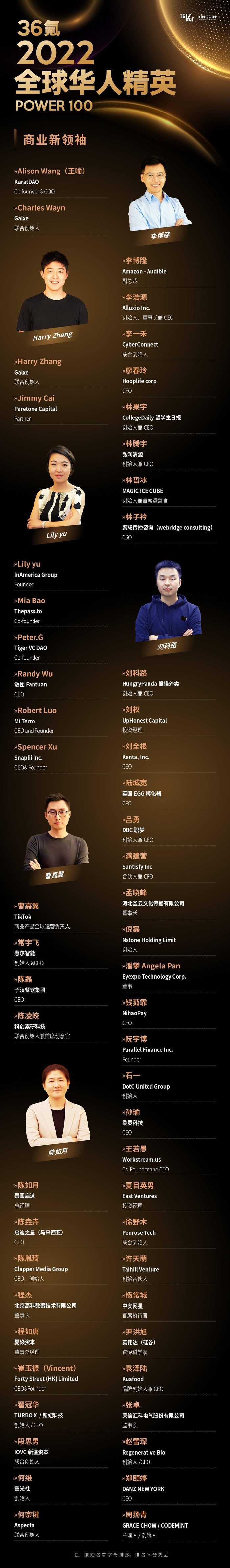 100张全球原生的华人创业面孔丨36kr 2022全球华人精英Power100发布