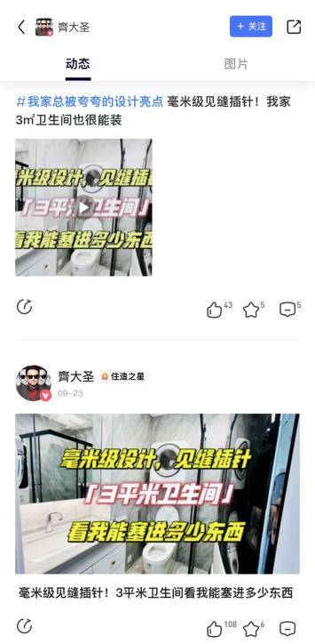 用户最为关心却也最容易踩雷的装修内容板块,催生了诸多输出干货的达人。如果你对装修有着丰富的经历,深谙其中的“红与黑”,不妨向@齊大圣 看齐。凭借多年来积累的宝贵经验,@齊大圣 向用户稳定输出着“避坑宝典”,让用户少走弯路的“利他性”恰恰满足了平台上诸多有着明确意向的用户,也大大增强了粉丝粘性。如今,@齊大圣 已收获了“住造之星”、“种草官”优秀荣誉。