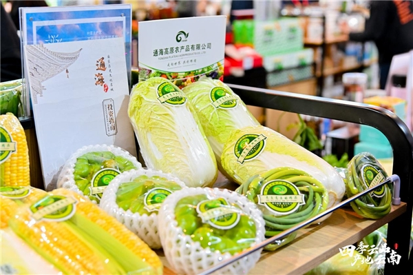 整个展馆不仅云茶云咖飘香,新鲜的云菜、云花、云果也都全部摆上了货架,整个场馆经过精心的设计,打造出了精品超市的氛围,整个格调,绿色、生态、健康、品质的氛围萦绕其中,频频吸引着来往游客的目光。